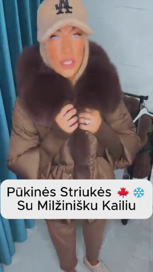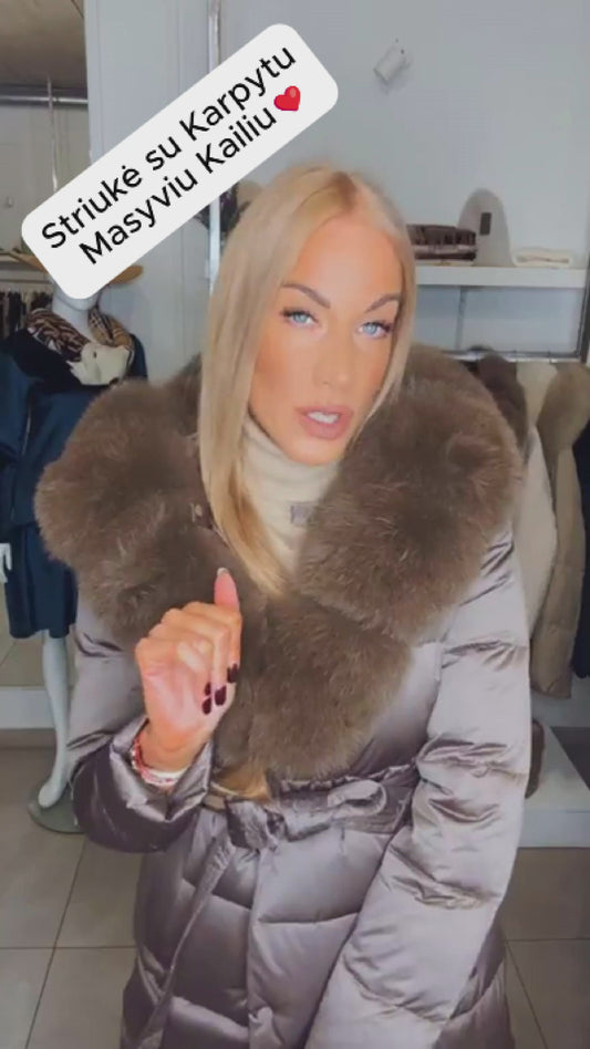 IšparduotaJuoda Žieminė Striukė su Lapės Kailiu