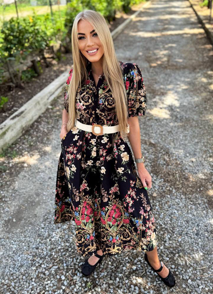 IšparduotaGėlėti Fuksijos Spalvos Marškinėliai