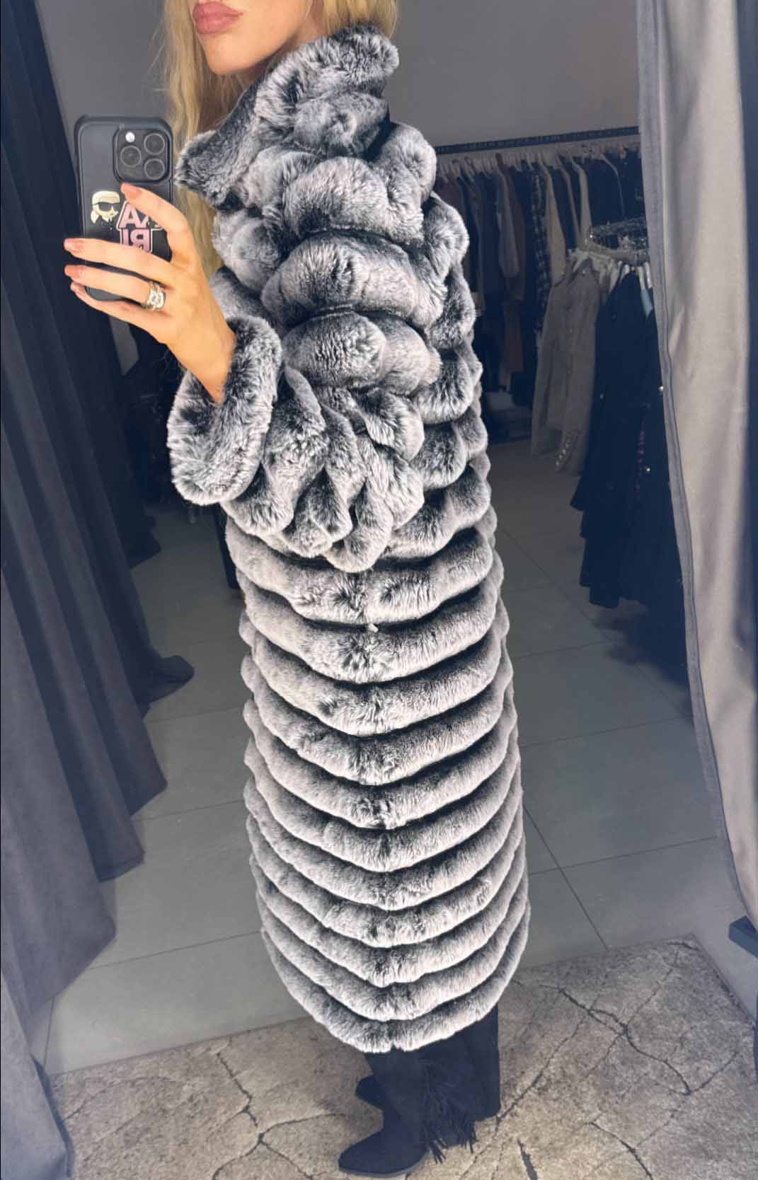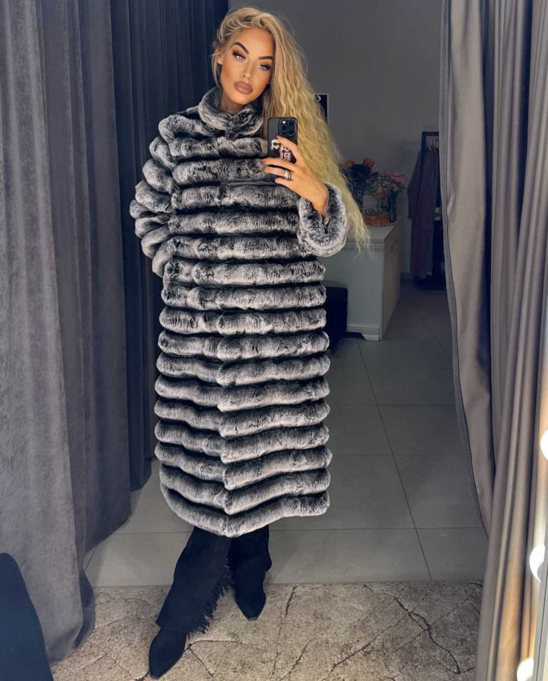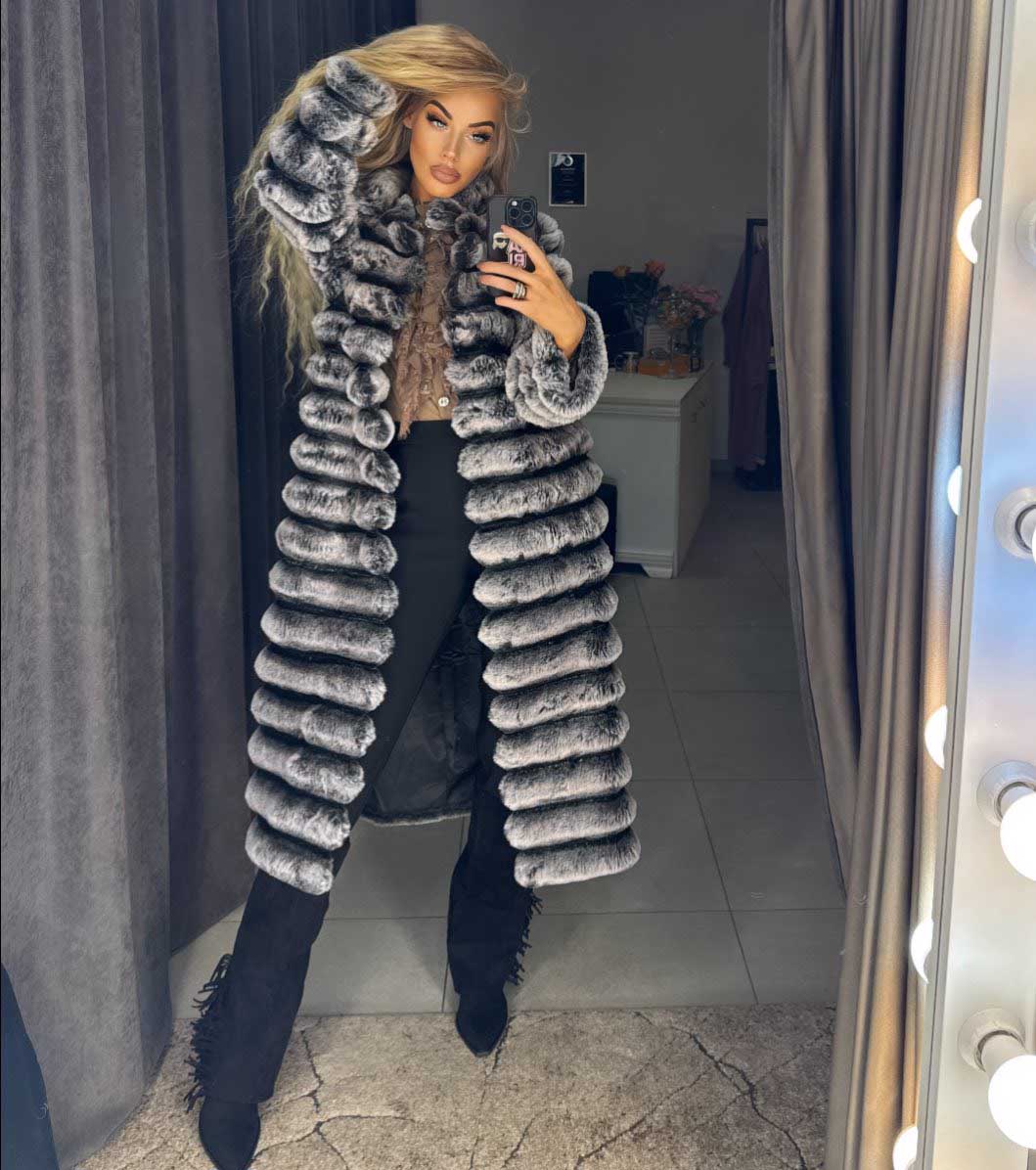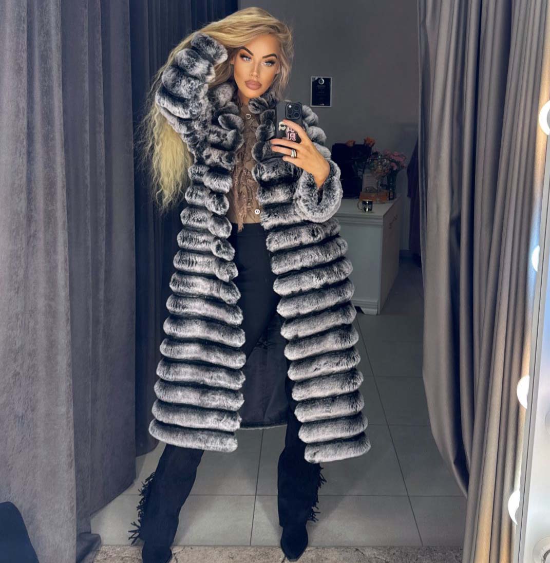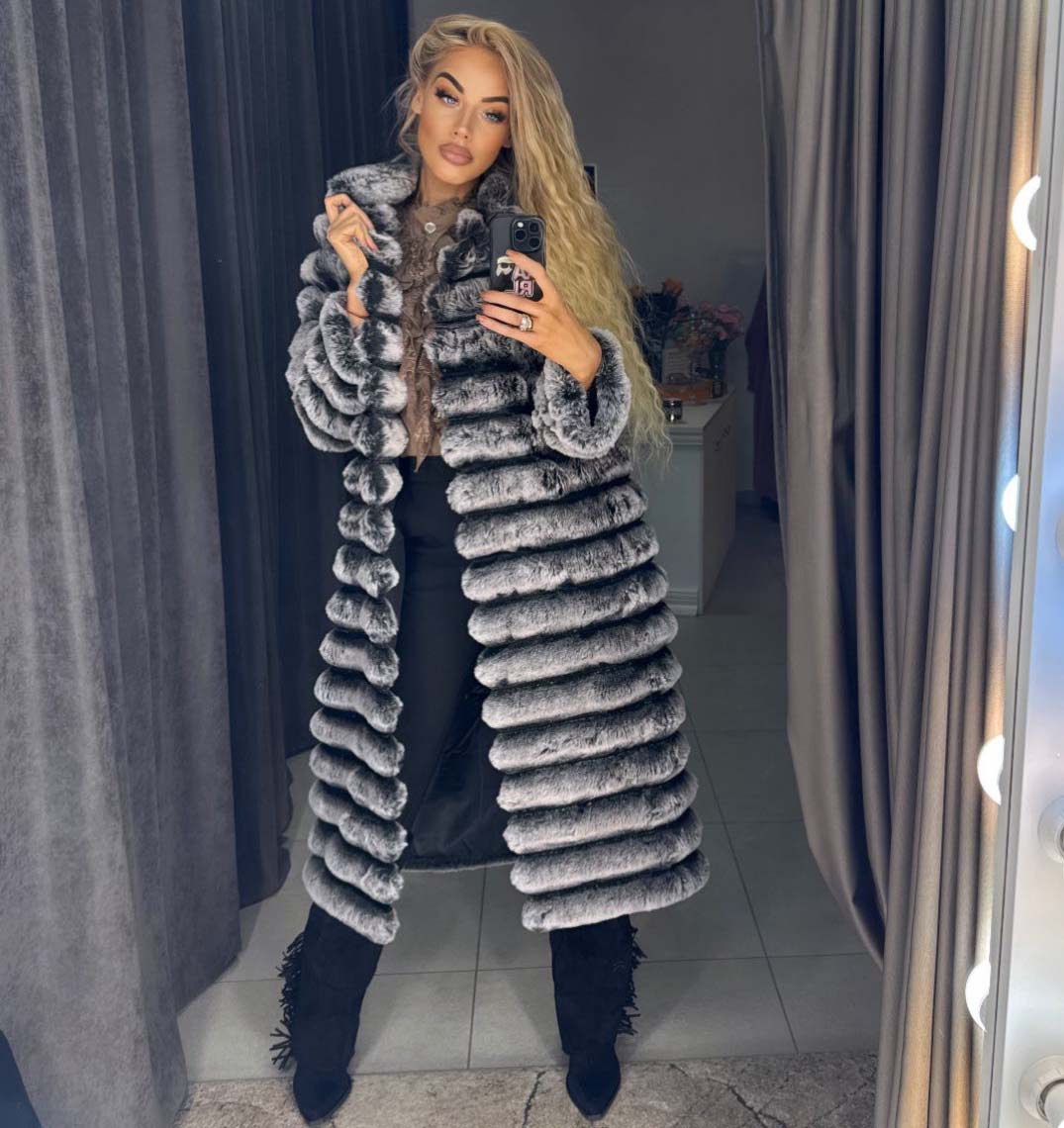 Die Pelzmäntel sind in zwei Größen erhältlich – S/M und M/L – sodass Sie ganz einfach die passende Größe finden. Dank der speziellen Konstruktion und des hochwertigen Materials schmiegt sich das Modell perfekt an den Körper an, ohne einzuengen oder die Bewegungsfreiheit einzuschränken. Die Struktur des Kunstpelzes wirkt natürlich und vermittelt ein Gefühl von kuscheliger Flauschigkeit. Er ist die ideale Wahl für Frauen, die Wert auf Stil, Komfort und Exklusivität legen.