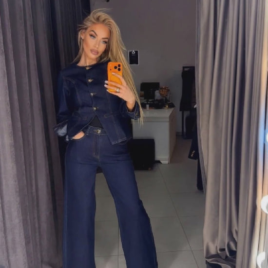 A two-piece denim suit is a stylish and versatile choice for a modern woman. This women's denim suit is perfect for both everyday wear and special occasions. The timeless denim material gives the image classic and elegance. The suit is easily adaptable to various style combinations.