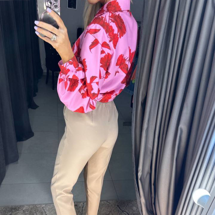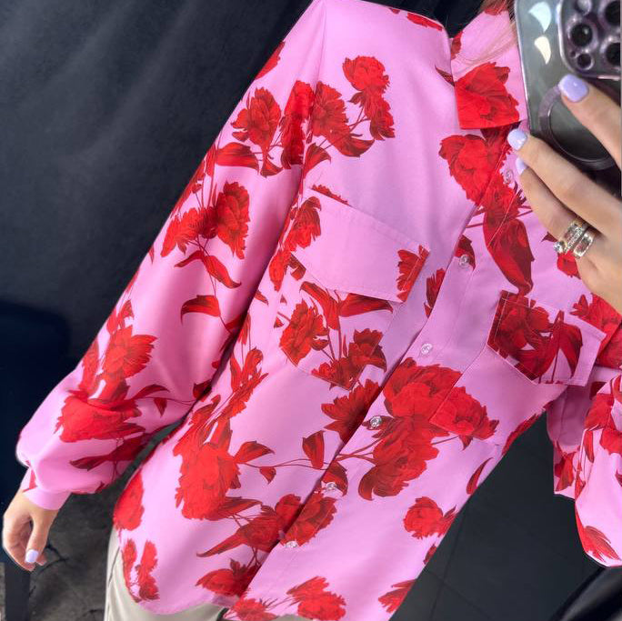 Gėlėti fuksijos spalvos marškinėliai yra puikus stiliaus ir komforto derinys. Pagaminta iš 95% viskozės ir 5% elastano - suteikia minkštą, kvėpuojantį pojūtį, kuris juda kartu su jumis visą dieną. Ryški fuksijos spalva kartu su elegantišku gėlių raštu padaro šiuos marškinius išskirtiniu bet kurio drabužių spintohe.