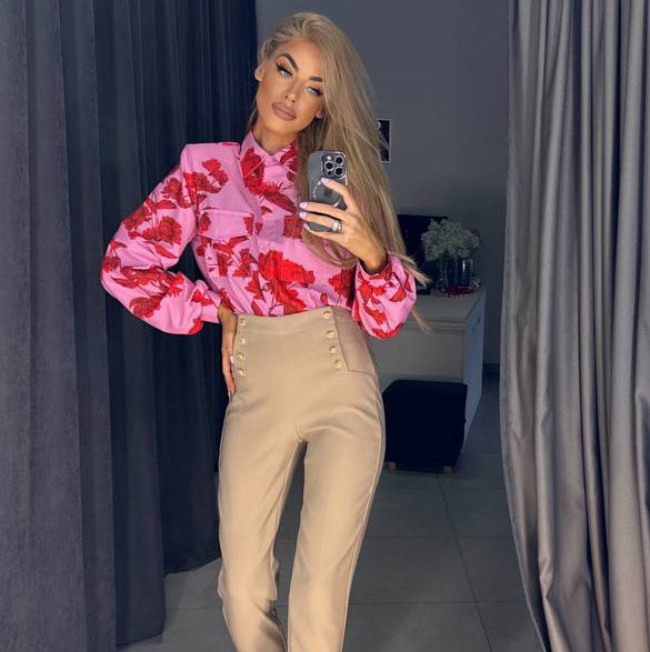 Pasižymi ryškia fuksijos spalva su elegantišku gėlių raštu.